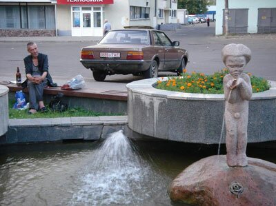 А вот от другой моей любимой скульптуры-фонтана, долгое время бывшей для меня загадкой, могилевчане избавились: в скверике недалеко от кинотеатра ?Родина? то ли старичок умывался кровью, бьющей прямо из сердца, то ли голый инопланетянин пытался полить цветок, зачерпывая воду из собственного горла в ладошки. Когда на месте фонтана я обнаружила только дырочку в камне, вдруг поняла, что это были Маленький принц и Роза, и вспомнила фонтан с грустью и нежностью. Видимо, этот фонтан вызывал недоумение не только у меня, но и у председателя райисполкома Виктора Шорикова.