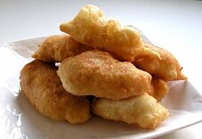 Ну а дальше всё, как обычно. Раскатываем лепешки из теста, кладём начинку, защипываем и жарим на сковороде с растительным маслом.