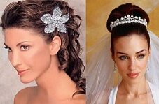 ? диадема, и тиара придают невесте особенный, царственный вид. Наиболее утончённо выглядят тиары, вписанные в причёску из длинных волос. Благодаря своему строению данные украшения прочно удерживаются на голове, особенно это утверждение верно для диадем с горизонтальным гребнем, и могут использоваться как самостоятельный элемент декора, так и в комплекте с фатой. Если для украшения свадебной причёски вы выбрали диадему, следует помнить о том, что она сама по себе является ярким аксессуаром, не требующим дополнительных украшений.